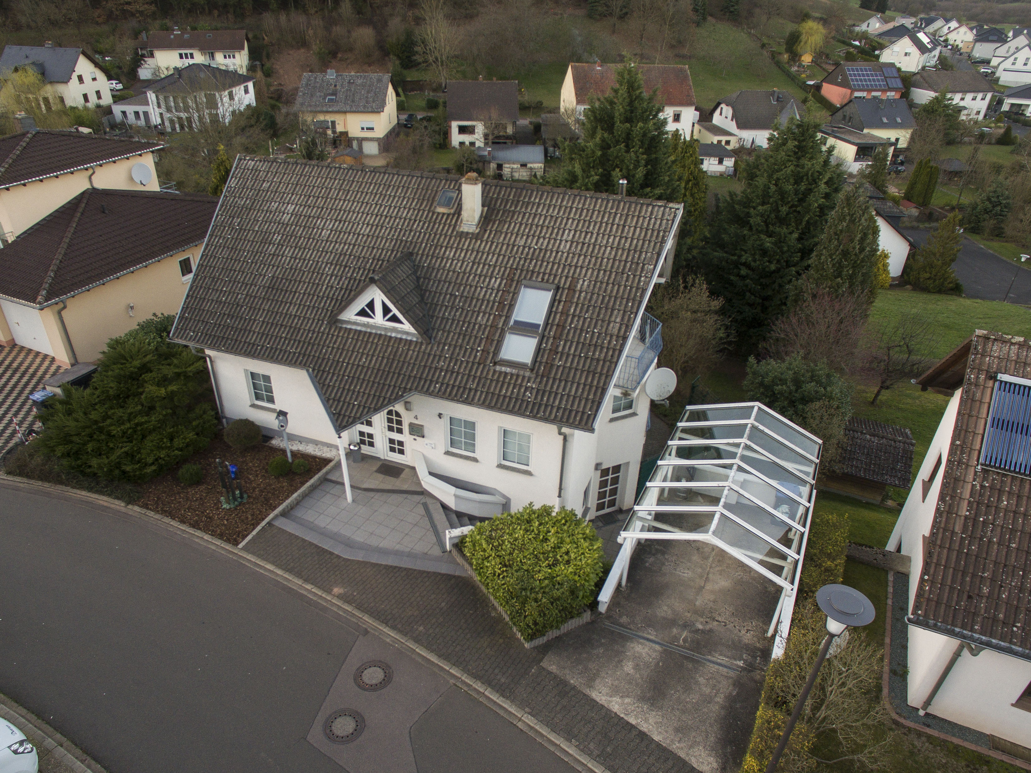 Das freistehende und gepflegte EFH mit ELW wurde im Jahr 1993 in Hanglage auf einem Grundstück von 682 m² (6,82 Ar) erbaut. Ein terrassenförmig angelegter Garten ist vorhanden. Weiterhin gibt es 3 Balkone und eine Terrasse. Insgesamt sind ca. 197 m² Wohnfläche vorhanden. Bedingt durch die Hanglage ist das Objekt teilunterkellert. Es sind 2 separate Eingänge vorhanden.